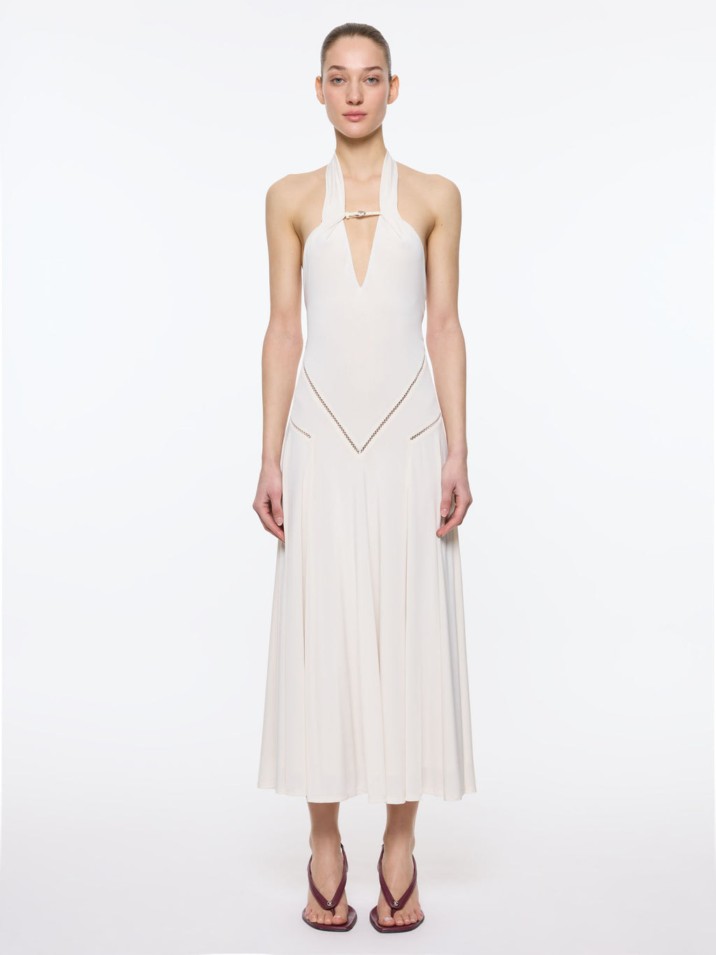 Our Rio Mini Dress is an evolution of our best-selling top, reimagined as a sculptural mini. Crafted in a crisp cotton and elevated jersey blend, it offers soft structure with subtle volume. The gathered off-shoulder neckline and exaggerated sleeve create a bold silhouette, while gentle ruching through the body adds dimension and shape.